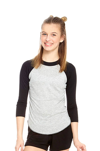 Girls Gray 3/4 Sleeve Baseball T-Shirt