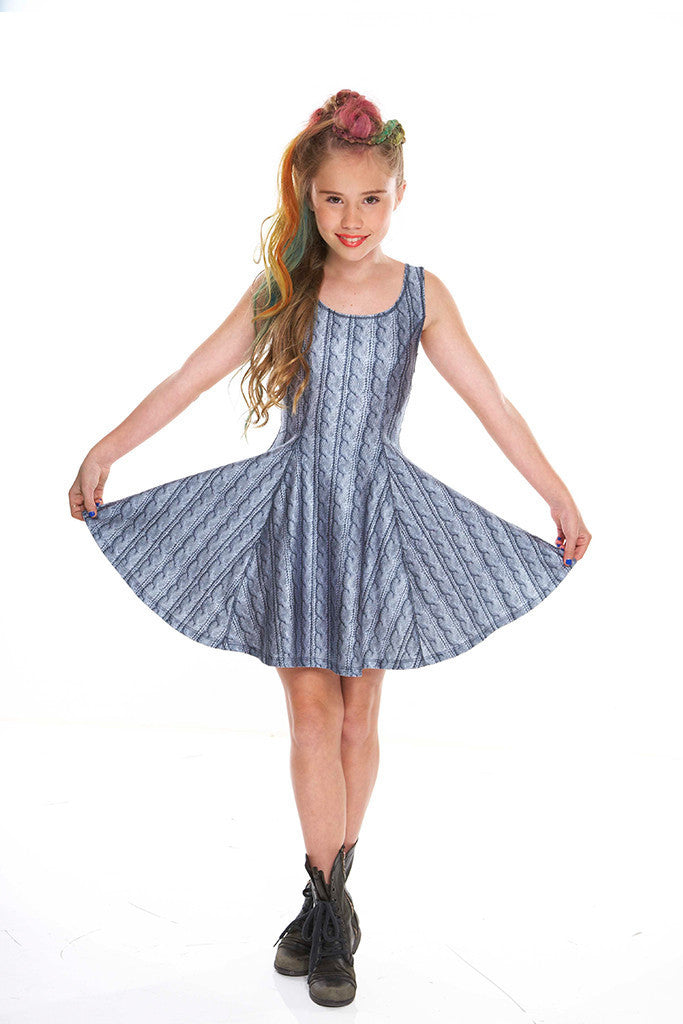 Girls Gray Cable Knit Skater Dress