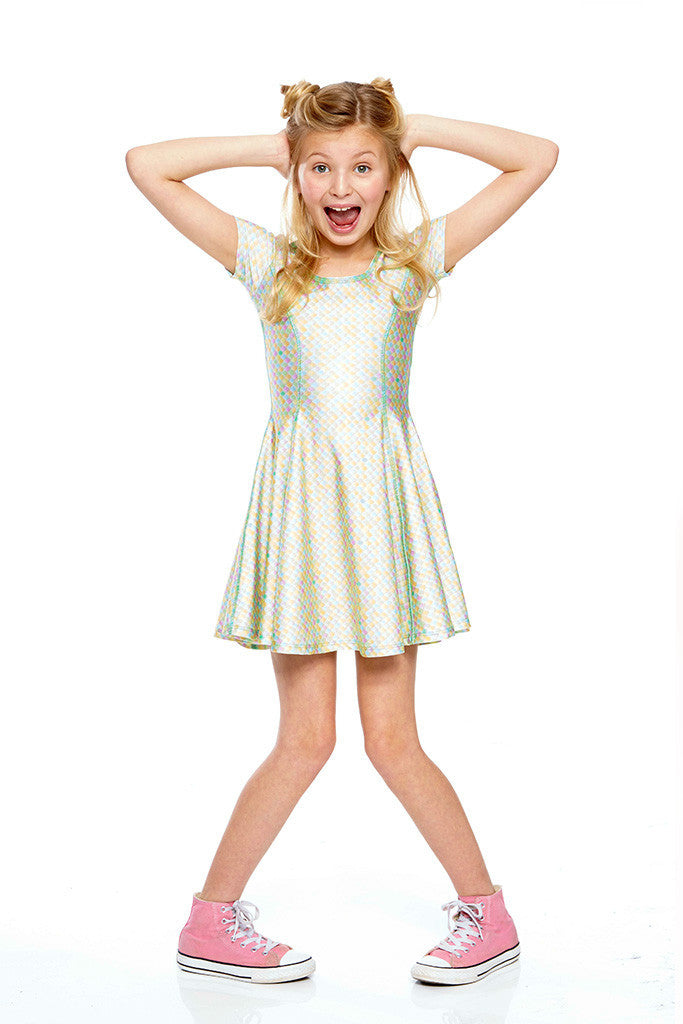 Girls Pastel Snake Cap Sleeve Skater Dress