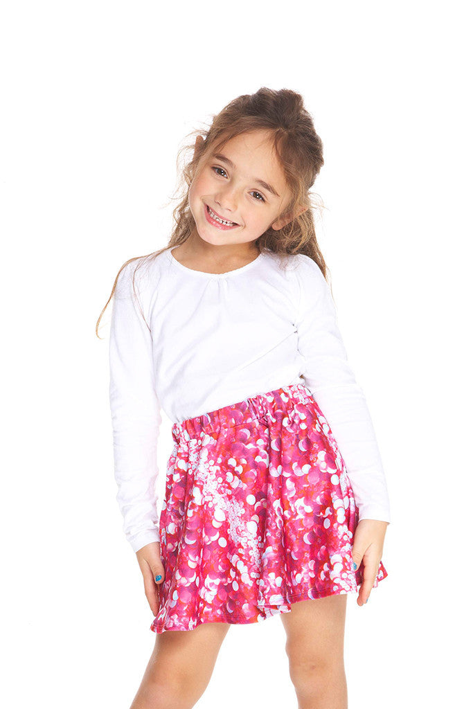 All the glitters: Our Pink Sequins Skater Skirt! Inspired by all things girly and glam, this flared spandex skirt is little-princess-perfect - pinky swear. Made in the USA
