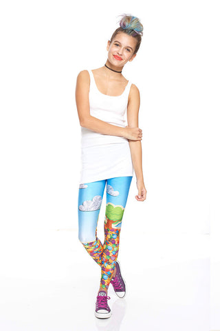 We take you to a world with whip cream clouds and fields of dreams with our Candy Crush Sweet Leggings! Your wardrobe has been lacking something this fun and whimsical, so get on board. Made in the USA