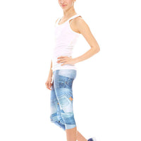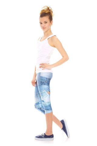Girls Denim Patchwork Capri Leggings