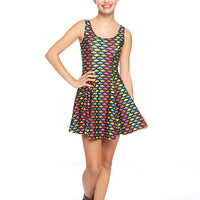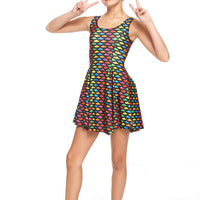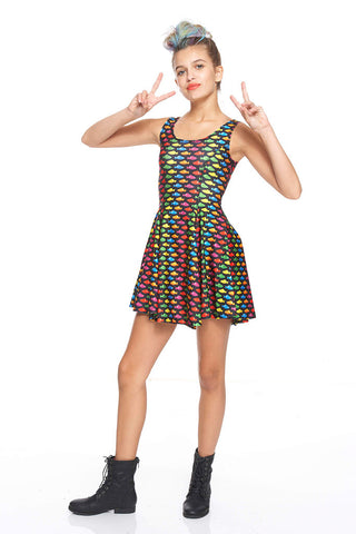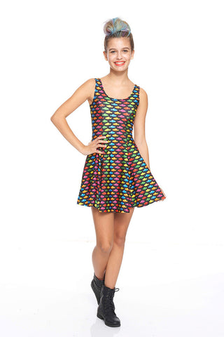 Erring on the conservative side (which says a lot for us), our Candy Crush Fishies Skater Dress have a black base with a colorful pop of little fishies throughout! What could be better than to have our very favorite booster, the fish, form lines right across your dress? Made in the USA