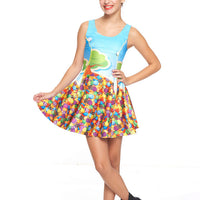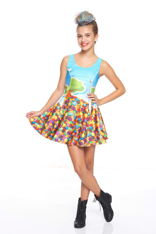 We take you to a world with whip cream clouds and fields of dreams with our Candy Crush Sweet Skater Dress! Your wardrobe has been lacking something this fun and whimsical, so get on board. Made in the USA.