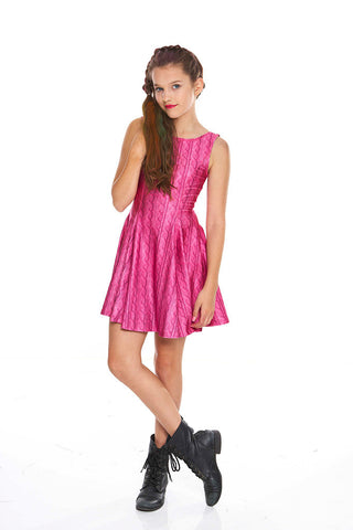 Girls Pink Cable Knit Skater Dress