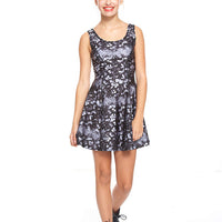 Light up the room! Our Black Sequins Skater Dress is pretty ready to shine. The flared skater dress is sprayed with fun and fancy black sequins because it's your party. Made in the USA