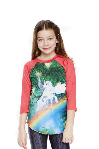 Girls Unicorn Pegasus 3/4 Sleeve Baseball T-Shirt