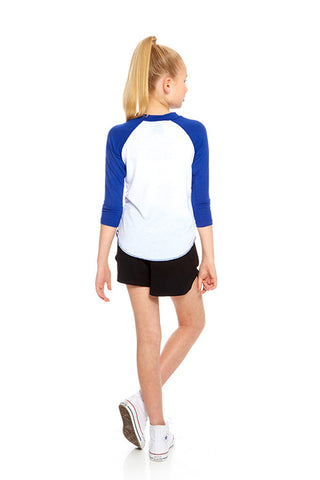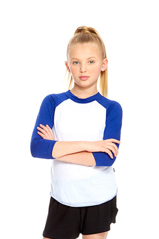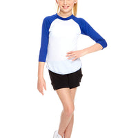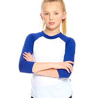 Girls White 3/4 Sleeve Baseball T-Shirt