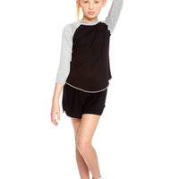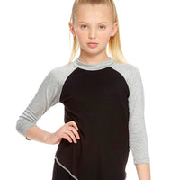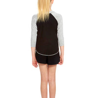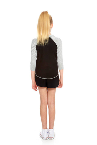 Girls Black 3/4 Sleeve Baseball T-Shirt