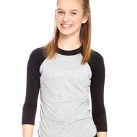 Girls Gray 3/4 Sleeve Baseball T-Shirt
