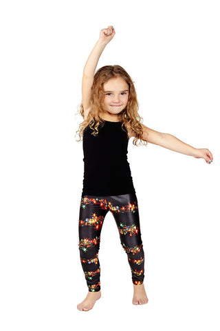 Kids Black Holiday Lights Leggings