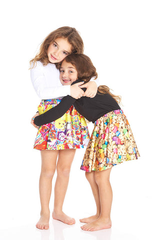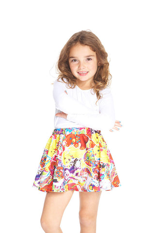 Gold stars? Our Stickers Skater Skirt deserve all sorts of extra credit. Splashed with a bold, sticker-inspired print, the spandex skirt is the cutest sticky situation ever. Made in the USA