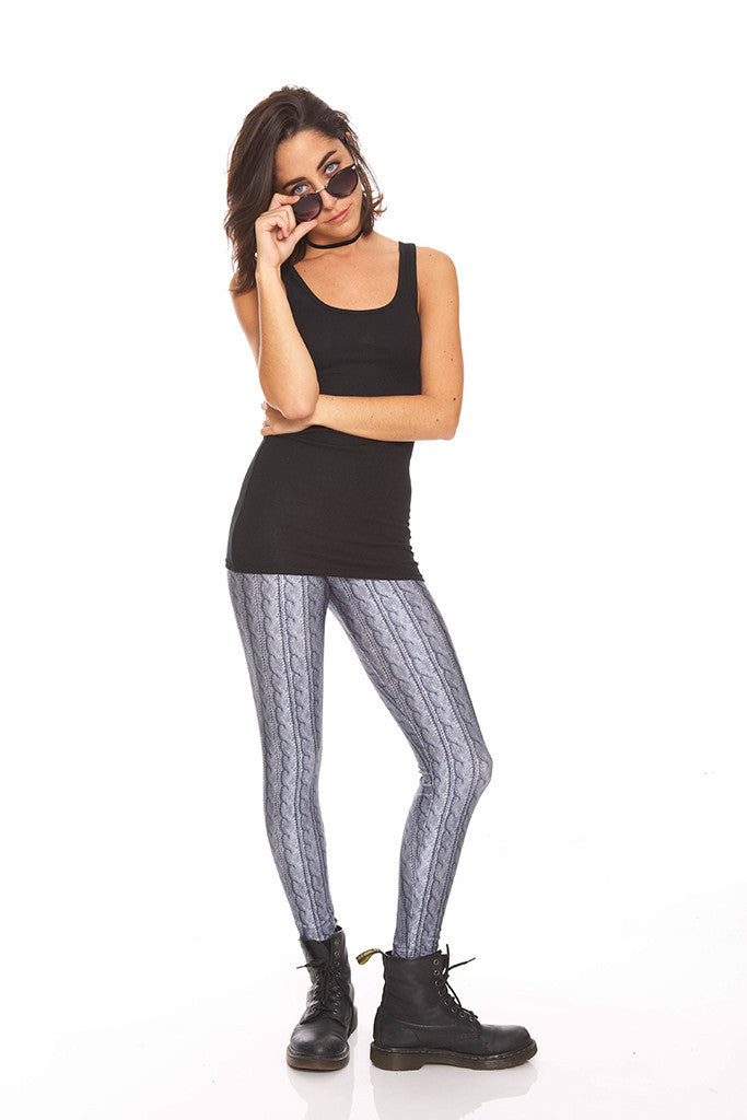 It looks like a sweater for your legs but it’s really our Gray Cable Knit Leggings. Classic, cool and ready for winter. Made in the USA