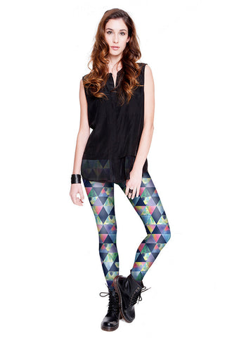These Iridescent Triangle Leggings look like an oil painting from the future. These multi-colored, iridescent triangles will take you to another dimension and beyond.