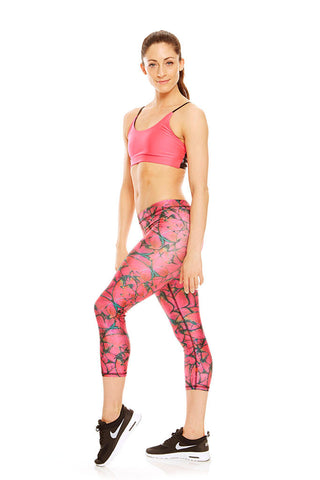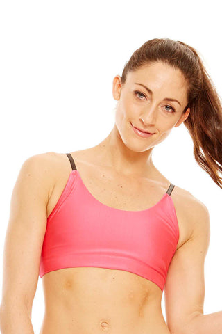 Womens Shocking Coral 5 Tier Elastic Strap Sports Bra
